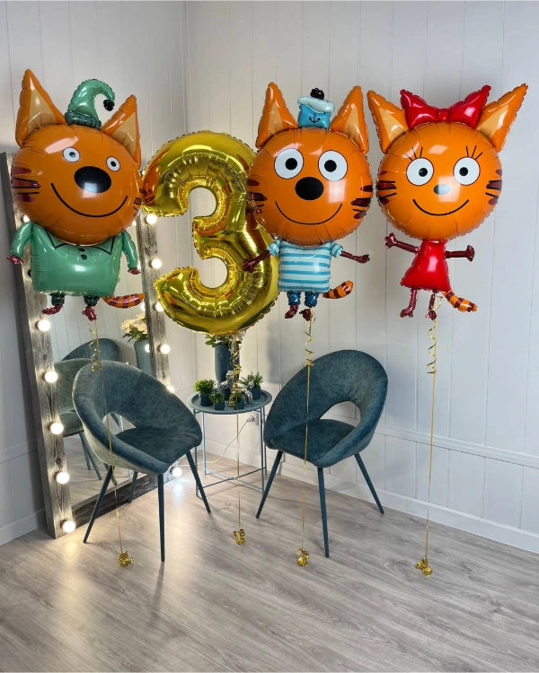 Разнообразие воздушных шаров из мультипликационного фильма «Три кота»