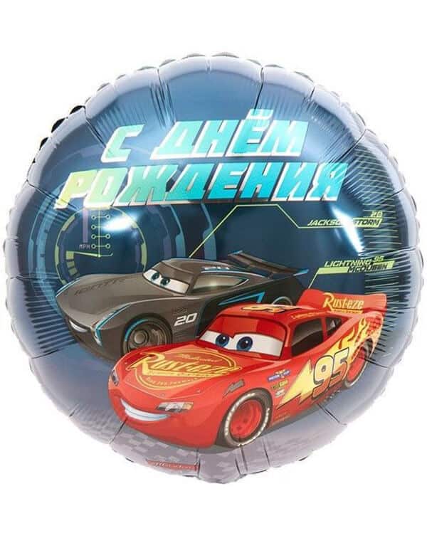 Если хочется приобрести яркий шар с Молнией Маквином можно выбрать круглое фольгированное изделие на поверхности которого напечатан рисунок. В этом случае чаще всего шар дополнен дополнительными надписями или оригинальным фоновым рисунком.