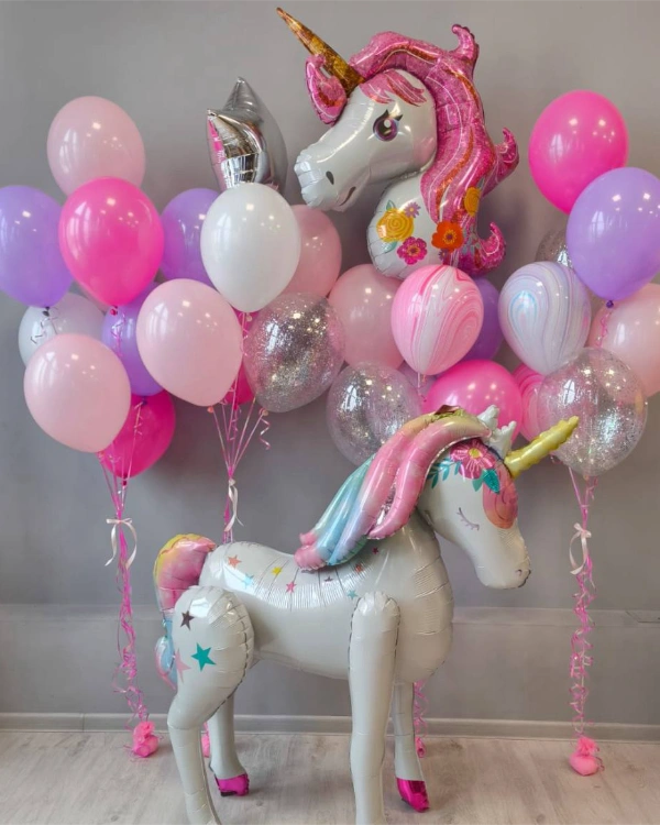 Со всеми пастельными белый выглядит очень легко и изящно. Такие наборы воздушных шаров подойдут для девушки или мамы.