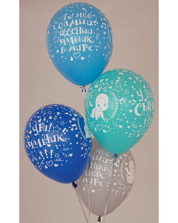 А вот объединяя белые и бирюзовые воздушные шары, удается получить классическую комбинацию, которой можно украсить мероприятия, посвященные мужчине или мальчику. Правда, в первом случае стоит предпочесть темно-бирюзовые оттенки. А для подарка мальчику стоит выбрать светло-бирюзовые тона.