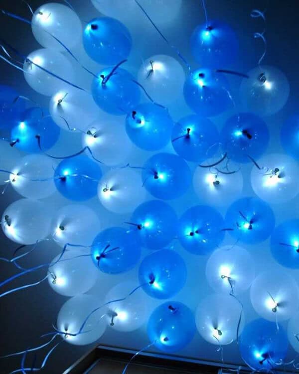 Светящиеся шары относятся к категории латексных изделий, но имеют свои определенные особенности, которые придают им неповторимый внешний вид. Внутри шарика размещается светодиодная лампочка, которая может иметь как белый цвет, так и быть окрашена в разные оттенки. Также допускается размещать одну лампочку побольше, которая придает общее свечение, так и использовать светодиодной ленты, на которых размещены сразу несколько лампочек.