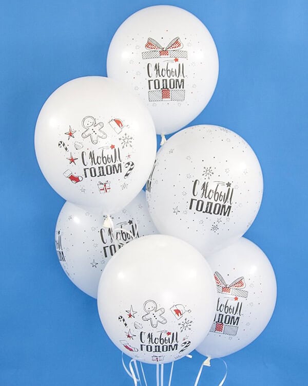 Если же хочется подарить кому-то воздушный шарик к Новому году, то можно выбрать изделие с надписью. Текст может отражать, как суть самого праздника, так и пожелания на будущее.