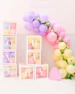 Коробки с воздушными шарами станут отличным декором для фотосессии.